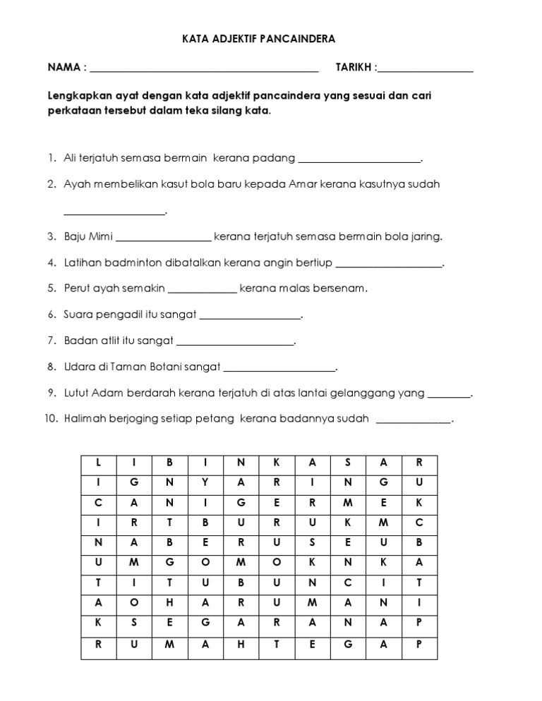 Image Result For Latihan Kata Adjektif Tahun 2 Preschool Printables Sensory Diet Language