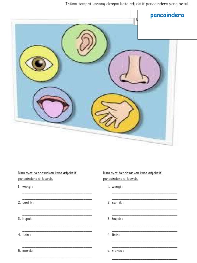 Bina Ayat Berdasarkan Kata Adjektif Pancaindera Di Bawah