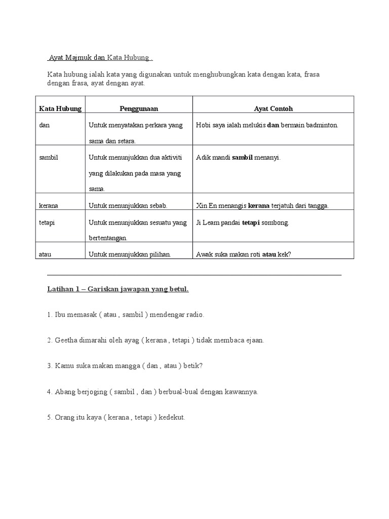 Contoh Ayat Kata Hubung Contoh Soal Dan Materi Pelajaran 7