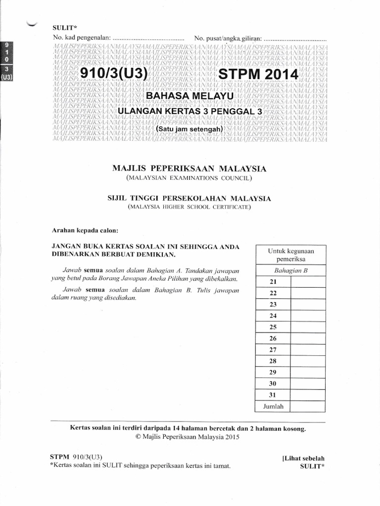 Bm Stpm Penggal 3 2014 Pdf Sulit No Kad Pengenalan No Pusat Angka Giliran I I F Ir R 11 L 1 I I Li Ii T Iii I 1 R L 1 F T 1 I R I R T T T A 1 1 1 1 Course Hero