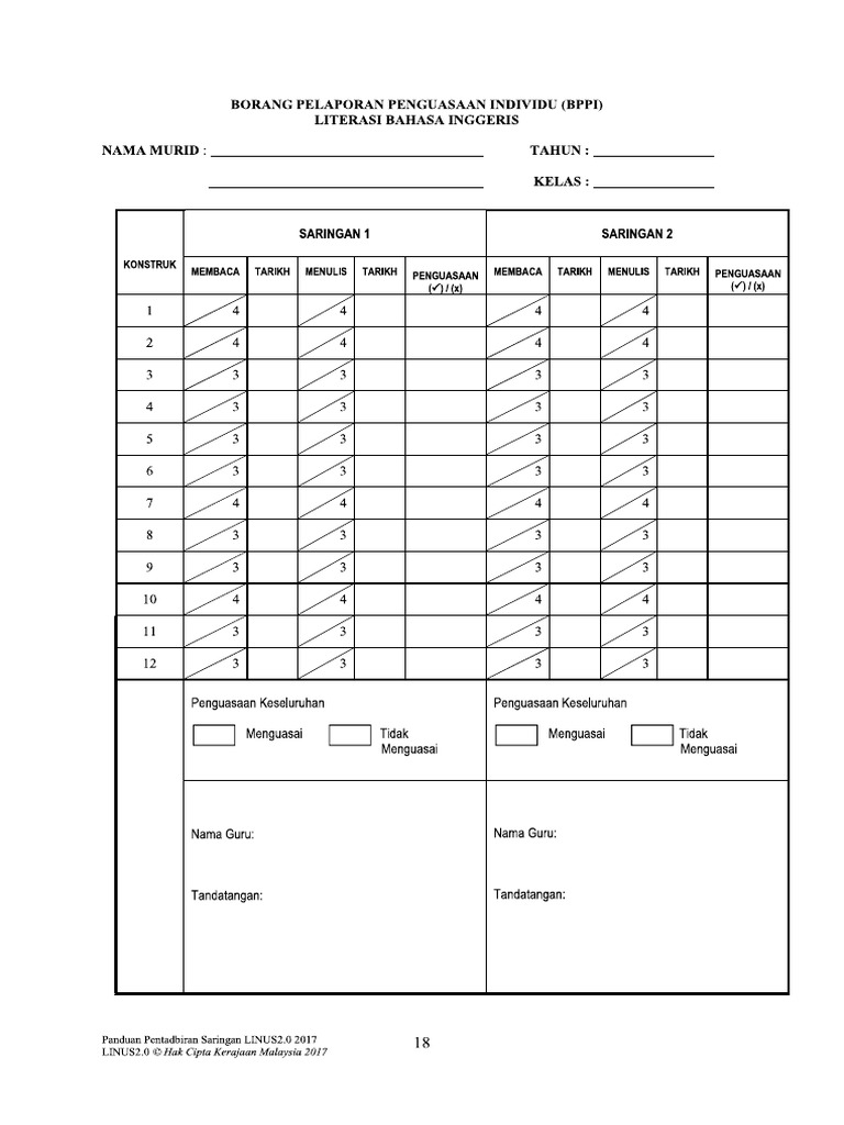 Borang Pelaporan Penguasaan Individu Linus 2018