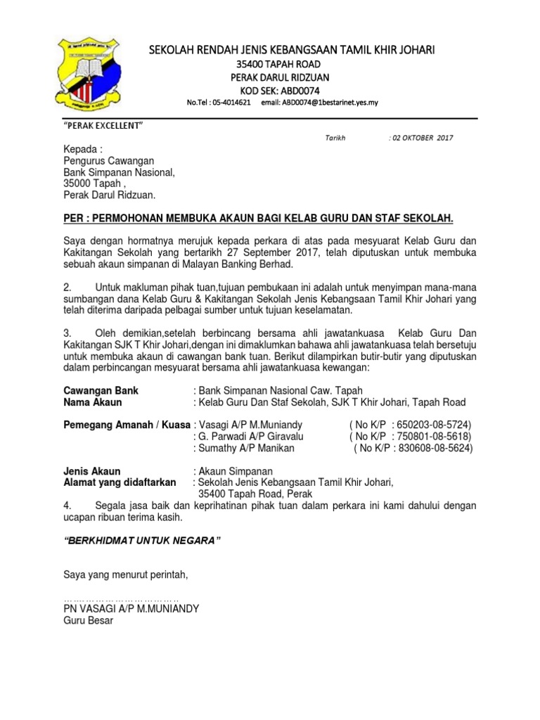 Contoh Surat Rasmi Permohonan Buka Akaun Bank Persatuan Cute766