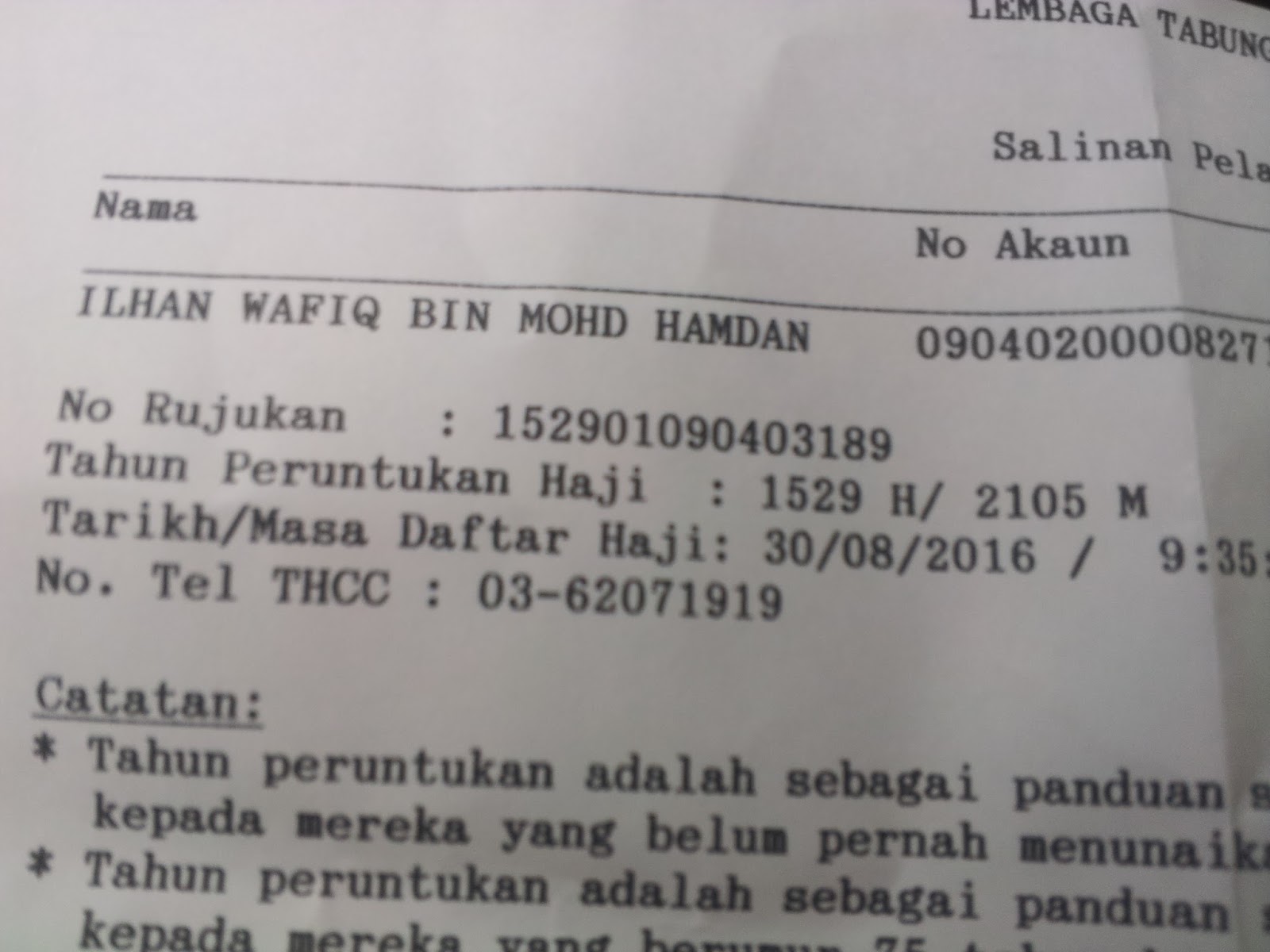 Journey Of My Life Buka Akaun Tabung Haji Anak Ilhan Wafiq