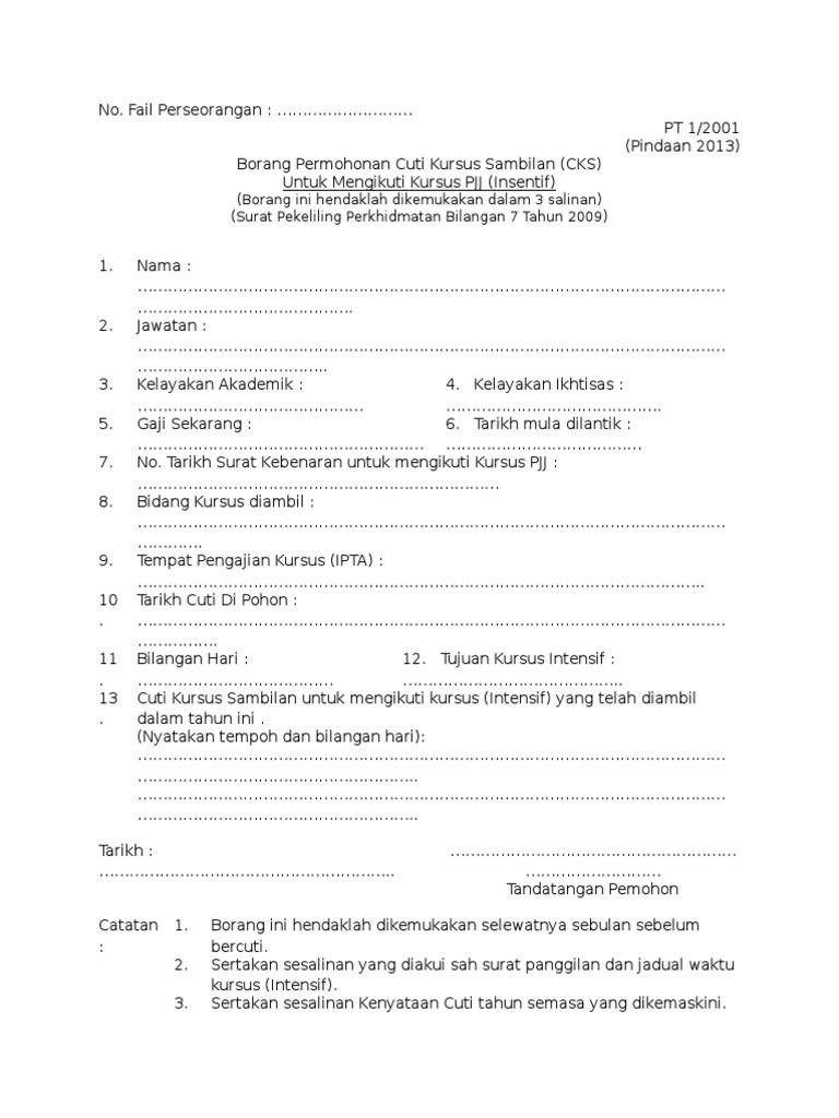 Borang Cuti Kursus Sambilan Pdf Free Download
