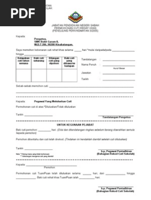 Borang Cuti Rehat Khas Guru Jpn Sabah