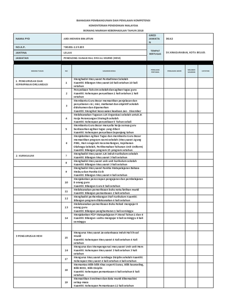 Contoh Penulisan Sasaran Keberhasilan Pbppp Mengikut Jawatan Dan Skop Tugas Ppp Mycikgu Net