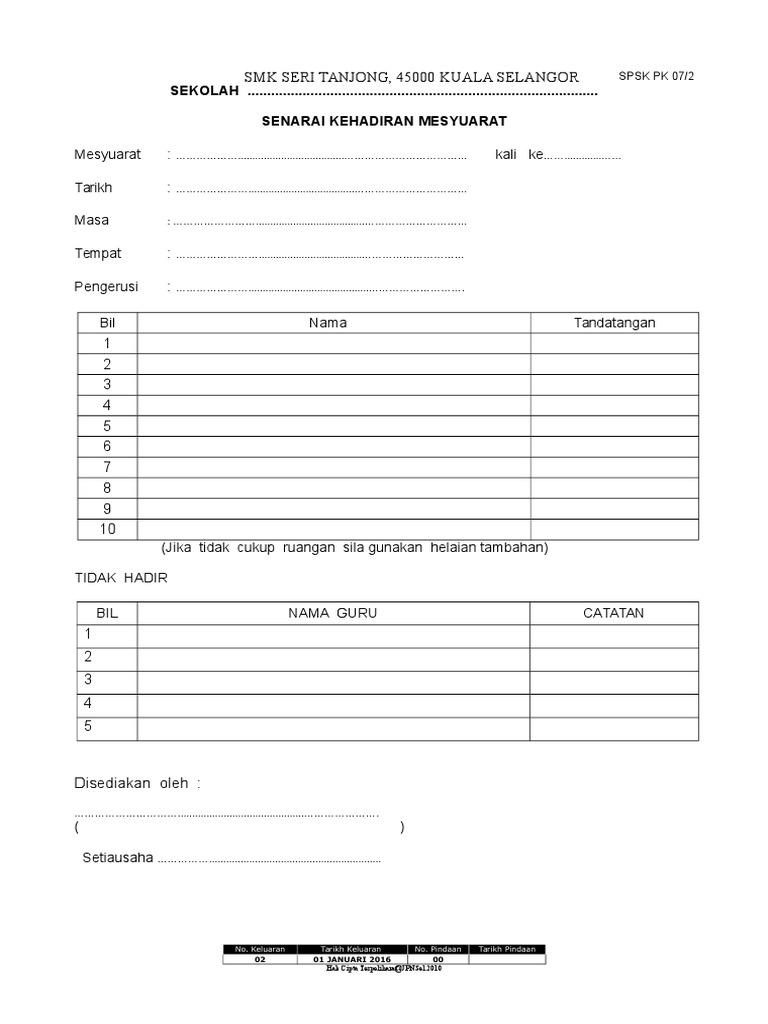 Borang Pk 07 2 Senarai Kehadiran Mesyuarat Doc Google Drive