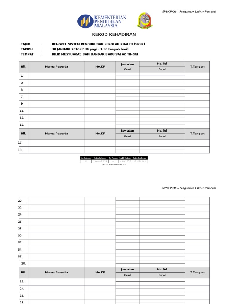 Borang Kehadiran Mesyuarat Spsk Selangor
