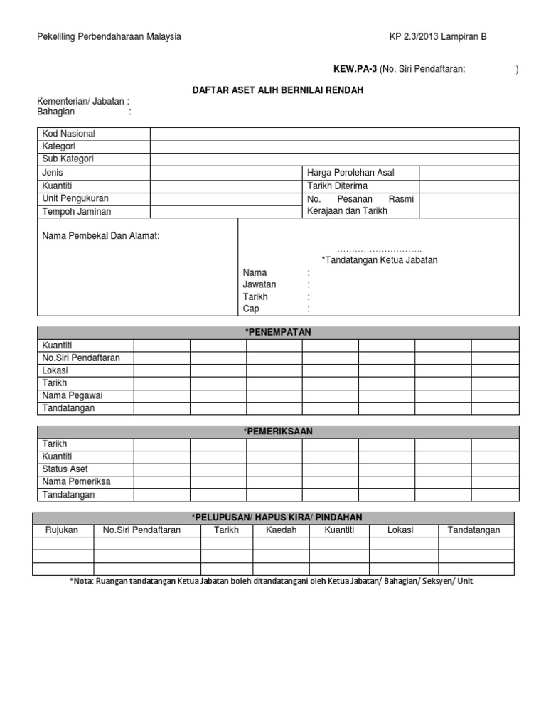 Kew Pa 3 Daftar Aset Alih Yang Bernilai Rendah