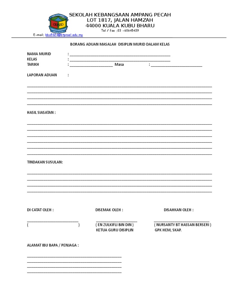 Borang Rekod Kesalahan Disiplin Murid Sk Bur