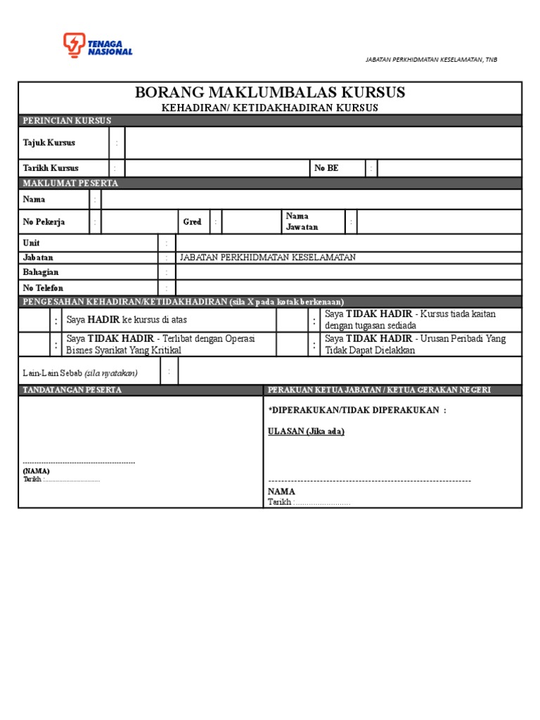 Contoh Borang Maklum Balas Kursus