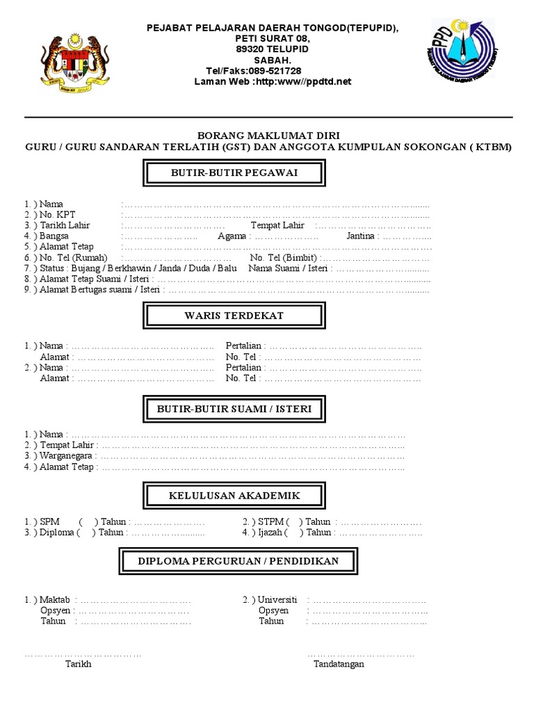 Borang Maklumat Guru Penyelaras Ppda Sekolah