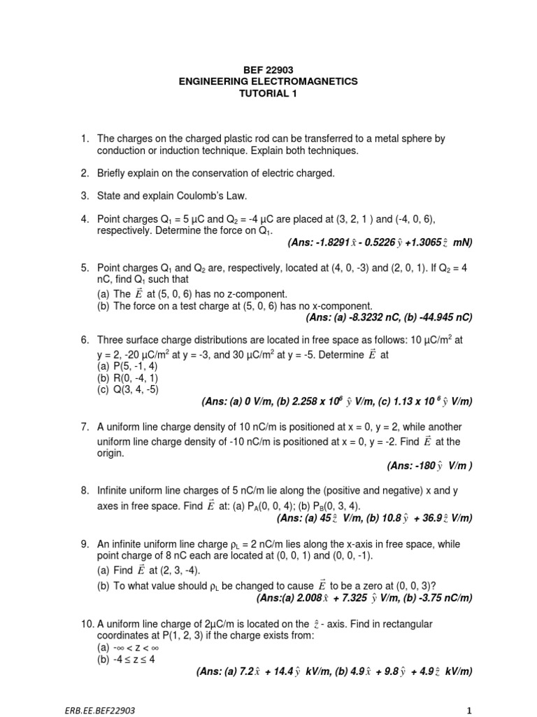 Bef22903 Tutorial 1 Cartesian Coordinate System Electric Charge