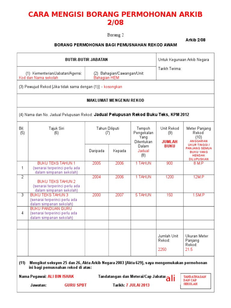 Tatacara Mengisi Borang Arkib 2 08 Dan Arkib 12