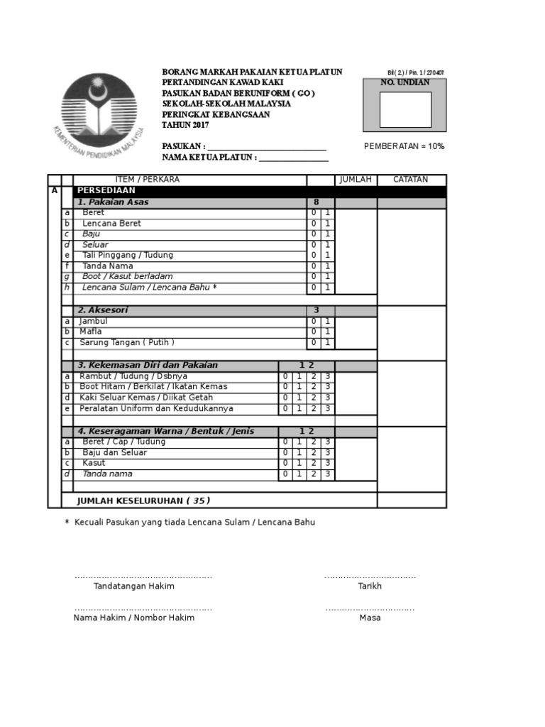 Borang Pemarkahan Pertandingan Kawad Kaki Unit Perkhemahan Pbb Ngo Download Pdf