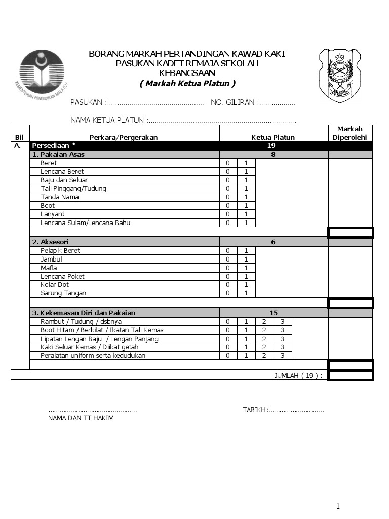 Borang Markah Kp Pertandingan Kawad 2009 Sm