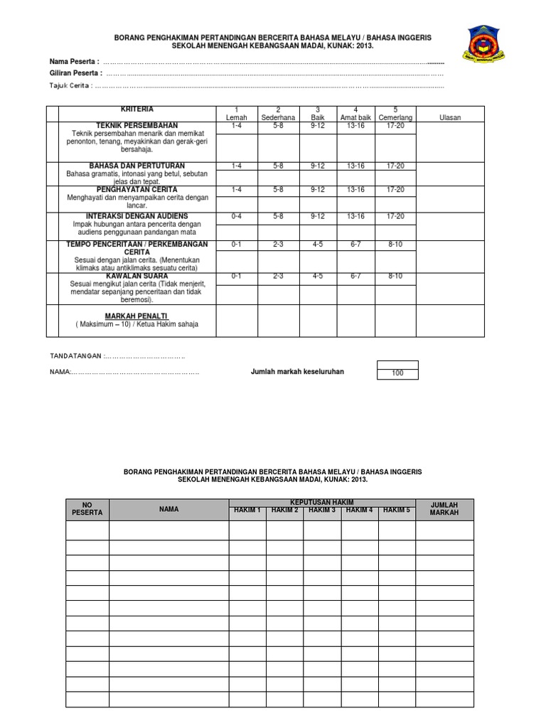 Contoh Borang Juri Pertandingan Bercerita