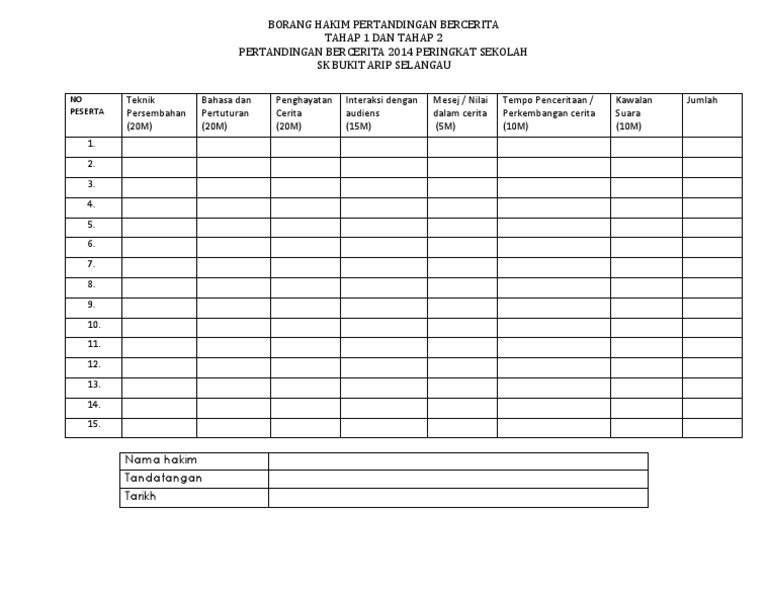 Borang Pemarkahan Pertandingan Bercerita Bahasa Malaysia Docx Document