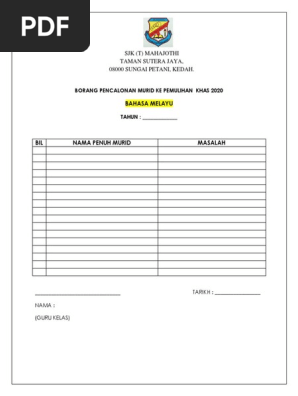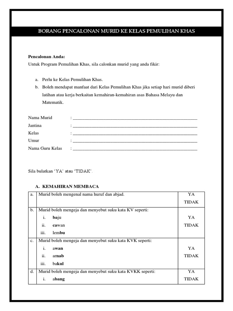 Borang Pencalonan Murid Ke Kelas Pemulihan Khas Pdf Free Download