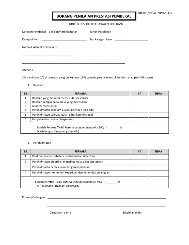Borang Pk 08 4 Penilaian Prestasi Pembekal Doc Google Drive