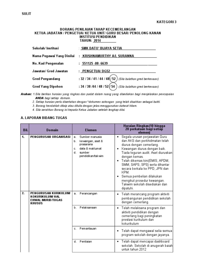 Contoh Borang Penilaian Tahap Kecemerlangan Kategori 3