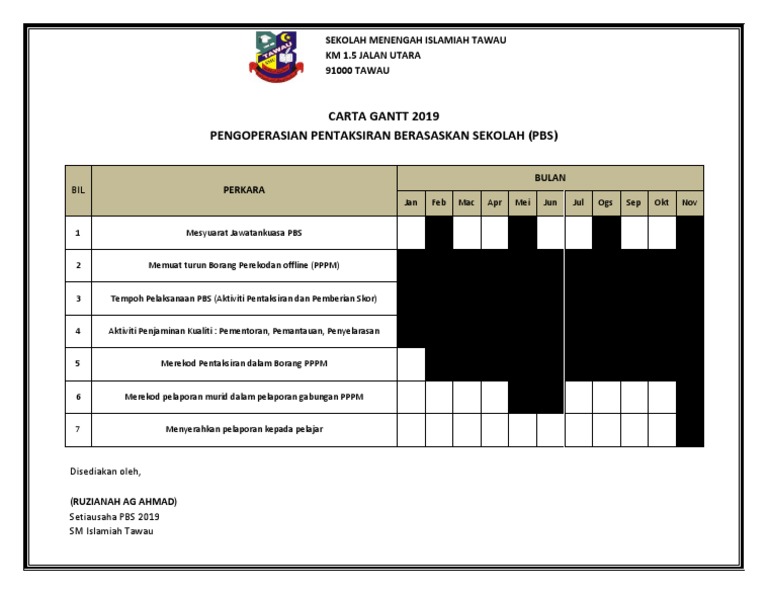 Doc Jadual Kerja Pengoperasian Pbs 2018 Noraime Salmee Academia Edu