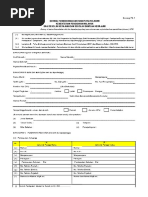 Borang Permohonan Bantuan Persekolahan Pb 2